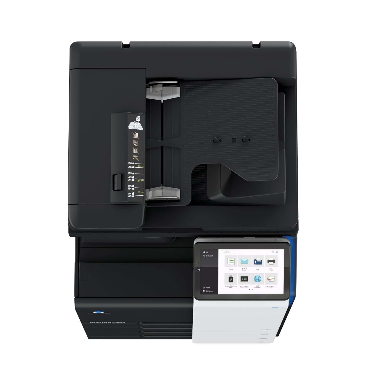 - Intuitive Bedienung: Bedienen Sie den bizhub C360i wie ein Smartphone oder Tablet dank individueller Benutzeroberfläche und hochauflösendem 10,1 Zoll Display mit einer 90° Neigung.