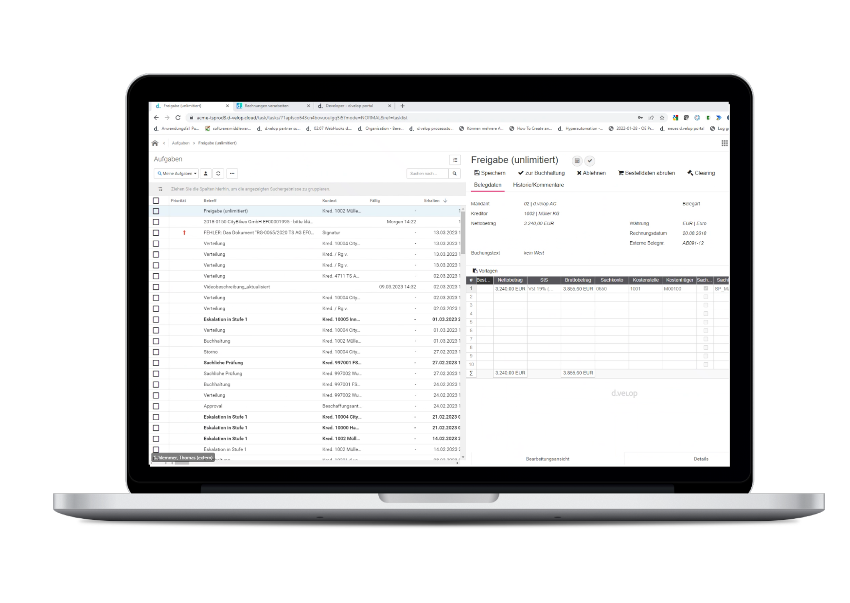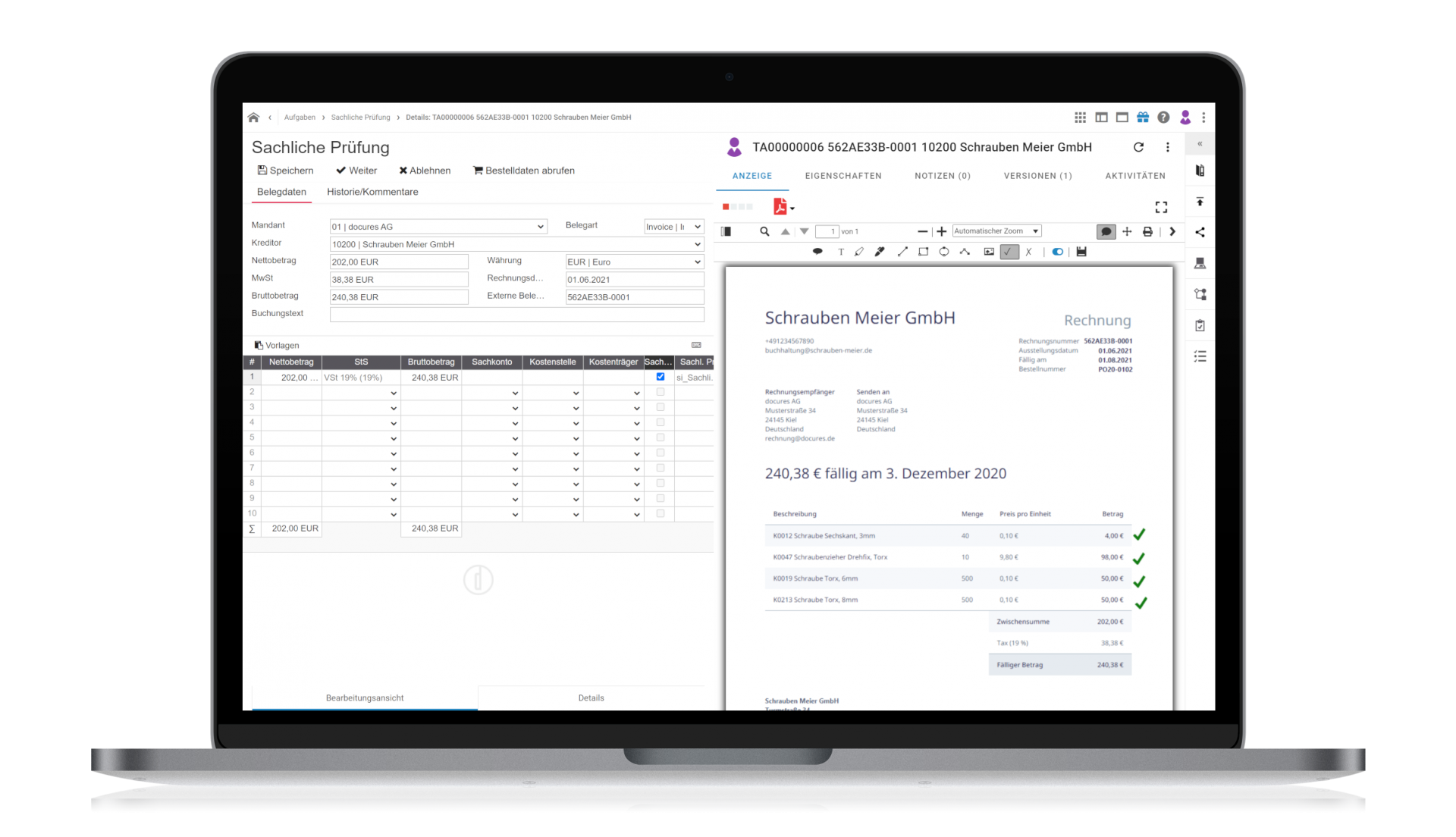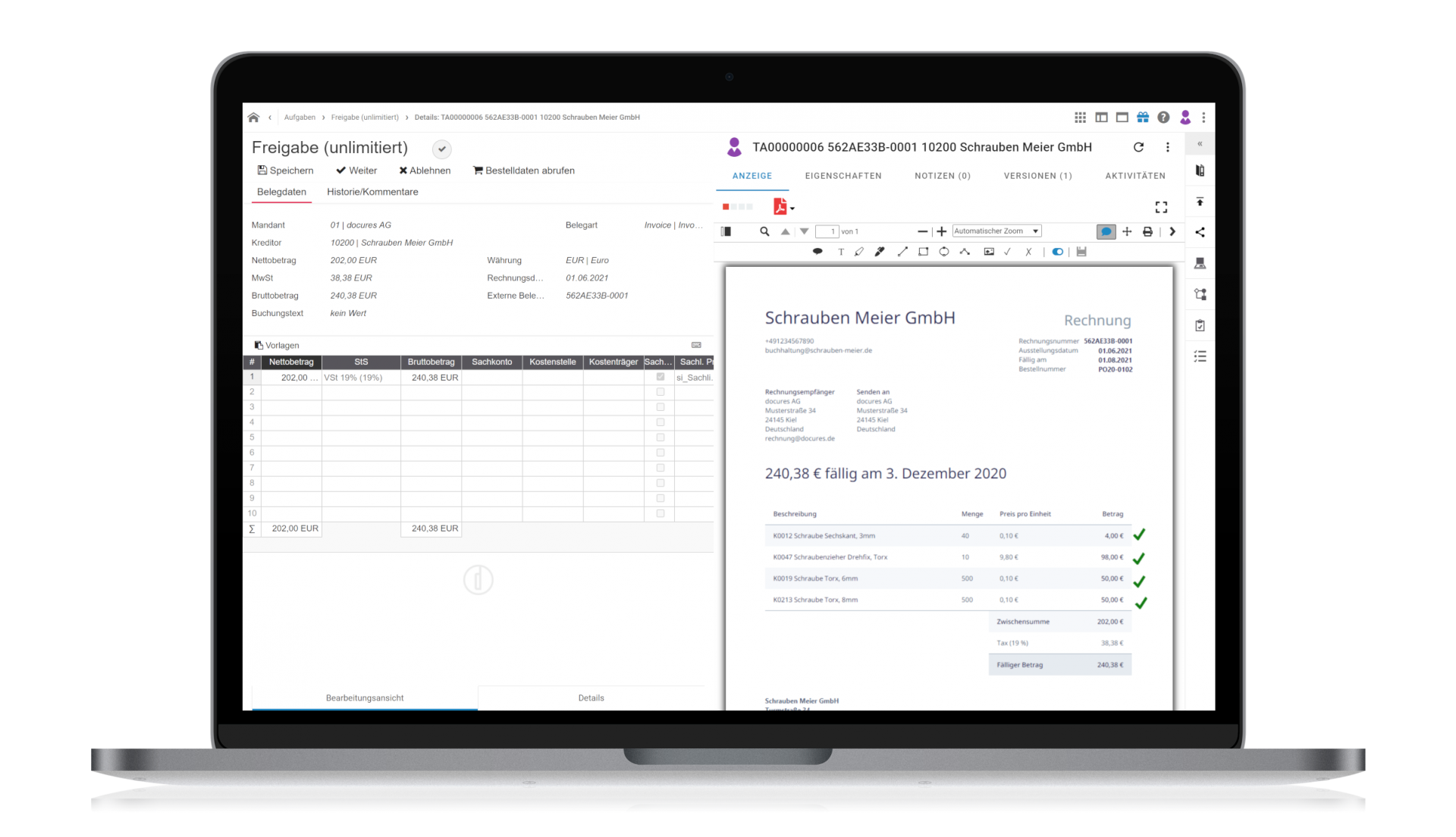 - Prüfen, buchen, freigeben