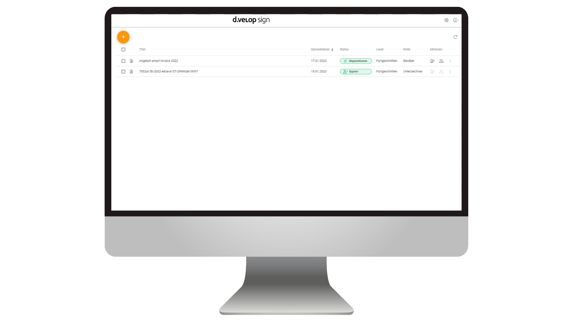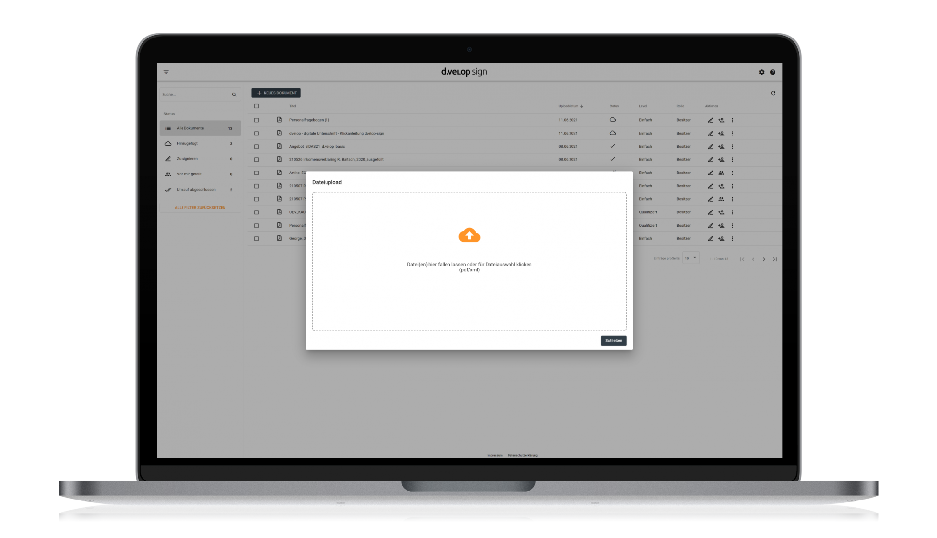 - Dokumente per "drag 'n' drop" hochladen und mit wenigen Klicks direkt unterschreiben lassen
