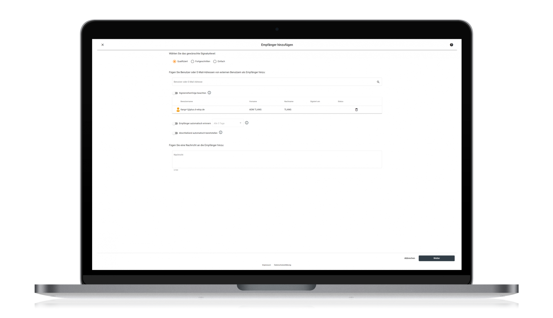 - Unterschriebene Dokumente können Sie einfach und sicher an Dritte weiterleiten
