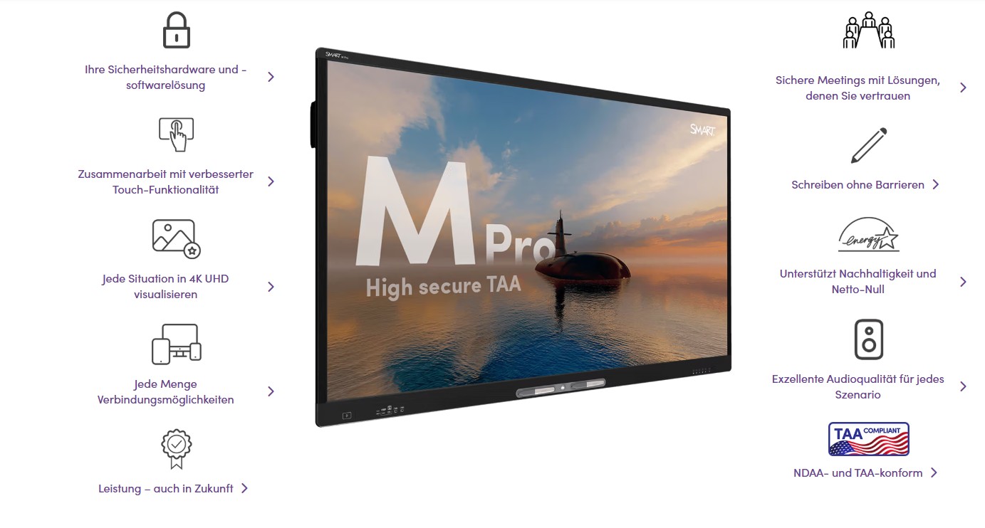 Die von uns eingesetzten Systeme des kanadischen Herstellers SMART Technologies wurden so konzipiert, dass sie auch in regulierten und sicherheitskritischen Umgebungen eingesetzt werden können.